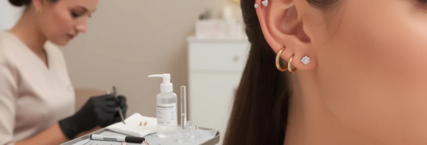 La phase de cicatrisation s’étend typiquement sur 6 à 8 semaines pour les piercings de lobe, nécessitant des soins méticuleux et constants. Les protocoles professionnels préconisent un n